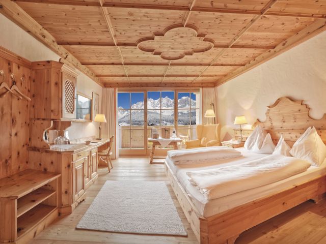 Ihr ganz persönliches Gemütlichkeits-Refugium erwartet Sie in unseren geräumigen Zimmern und Suiten. Hier genießen Sie viel Komfort und liebevolle Details für einen rundum erholsamen Aufenthalt. Durch den Einsatz von heimischem Zirbenholz entsteht ein angenehm duftendes und beruhigendes Raumklima. Und der großzügige Einsatz von Naturmaterialien, wie Zirbenholz, Baum- oder Schafwolle sowie Leinen schafft gleich noch mehr Wohlbefinden. Der besonderen, handgemachten Art.