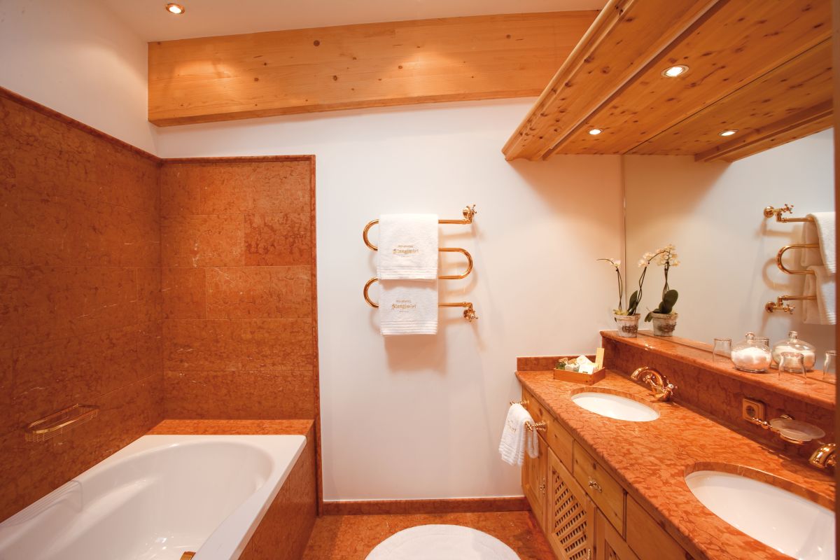Großer Wohn-Schlafraum mit hochwertigen Zirbenholz-Möbeln, Badezimmer mit Badewanne und/oder Dusche, getrenntes WC, gemütlicher Sitzbereich, Telefon, WLAN, Minibar, Safe, Flatscreen-TV, Nespresso-Maschine mit nachhaltigen Kapseln, Balkon oder Terrasse teilweise mit Blick zum Wilden Kaiser