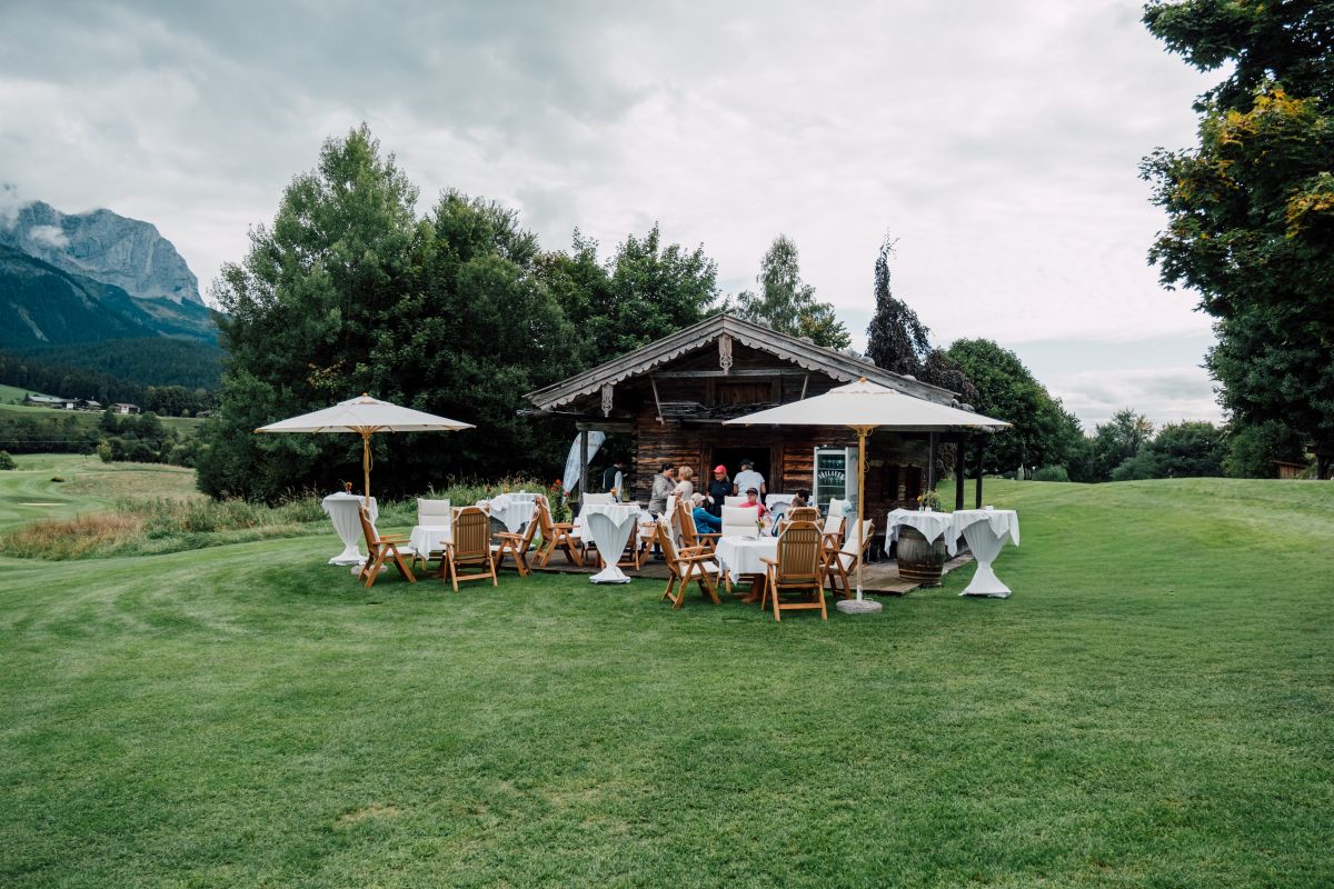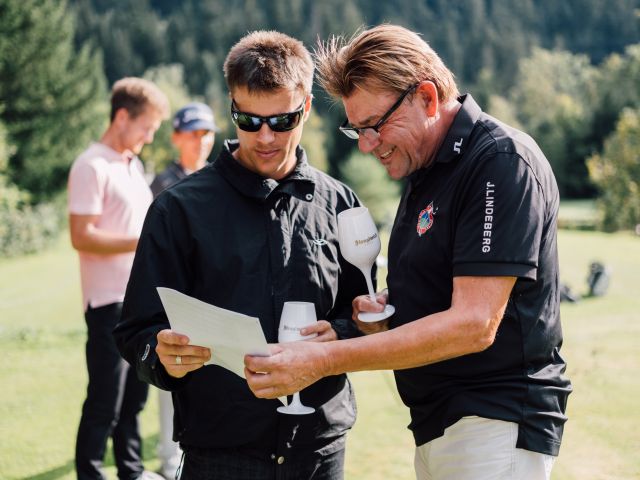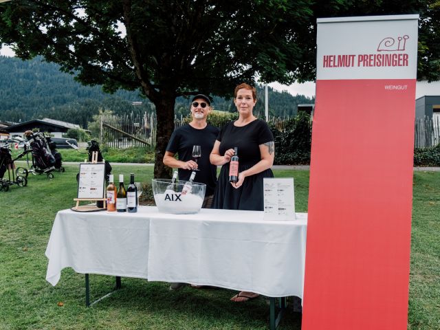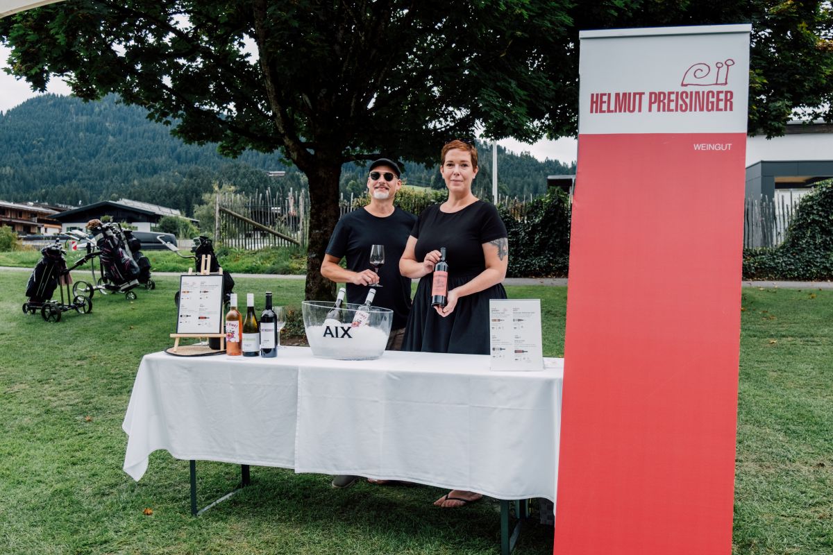 Am Freitag ging es dann sportlich zur Sache: Auf dem herrlich gepflegten Golfplatz Wilder Kaiser in Ellmau starteten wir auf Loch 1 und 10 in ein aufregendes Turnier bei strahlendem Sonnenschein. Für das leibliche Wohl war bestens gesorgt – mit feinen Köstlichkeiten sowie erfrischenden Snacks und Drinks. Ein besonderes Highlight war die Weinverpflegung von Winzer Helmut Preisinger, dessen edle Tropfen die Spieler zusätzlich verwöhnten.