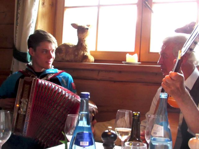 Als Ausgleich zum harten Training verbrachten die ÖSV-Adler einen gemütlichen Nachmittag im Stanglwirt’s Berg-Chalet Hüttlingmoos wo der junge Skispringer Philipp Aschenwald gemeinsam mit Stanglwirt Balthasar Hauser für seine Kollegen musizierte.