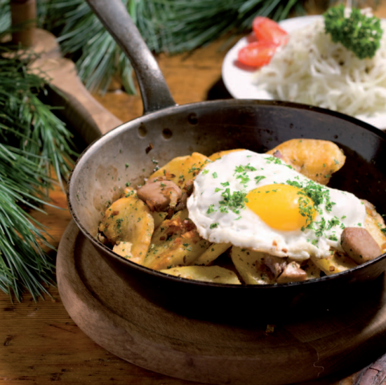 Das Tiroler Gröstl ist ein rustikales Gericht, das in den Alpenregionen tief verwurzelt ist und seit Generationen genossen wird. Ursprünglich als Resteverwertung entstanden, ist es heute eine der beliebtesten Spezialitäten der Tiroler Küche.