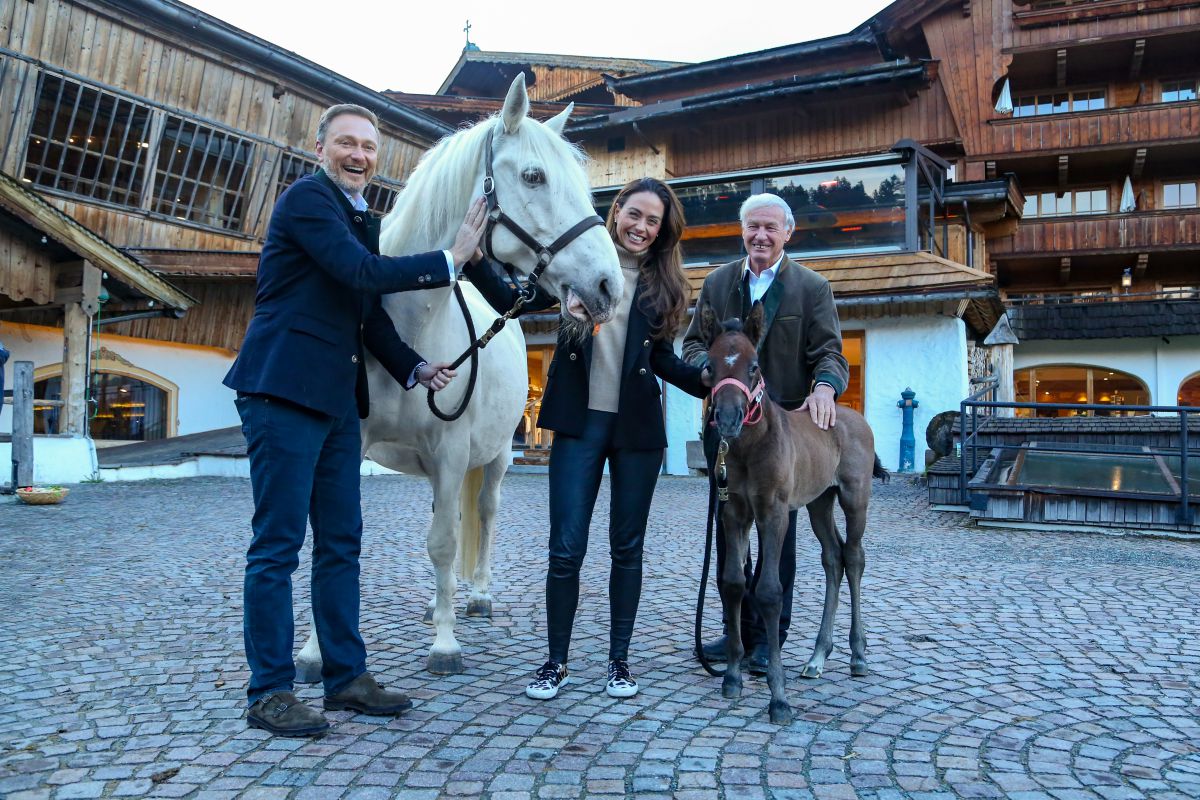 Besonders freut es uns, dass sich unsere Stammgäste und Freunde – Pferdebegeisterte und selbst leidenschatliche Reiter in unserer Reitschule – Politiker Christian Lindner und Verlobte Franca Lehfehlt, sofort voller Begeisterung bereit erklärt haben, die Patenschaft für den Neuzugang zu übernehmen. „Das Besondere an unserem Gestüt und Reiterhof ist, dass unsere Pferde nicht nur bei uns geboren werden und aufwachsen, sondern wir sie auch ausbilden bis sie bereit dafür sind, ihr gelerntes Wissen an unsere Reitschüler weiterzugeben. Es ist uns daher eine große Freude und Ehre, unserem fleißigen Reitschüler Christian Lindner in einigen Jahren somit sogar ein Reiterlebnis auf „seinem“ eigenen Patenpferd ermöglichen zu können.“ berichtet Gestütsleitung Elisabeth Hauser-Benz begeistert.