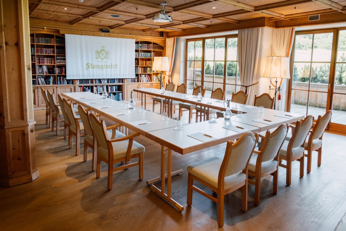 In our Library, you'll find a relaxed and friendly ambience for meetings of up to 30 people. The cosy open fire, the magnificent view of the Wilder Kaiser and the direct access to the terrace could distract some guests from your event! From video projectors to WiFi, all the basic technical equipment is included in the hire price. To guarantee your event goes off without a hitch, a professional technician is available.