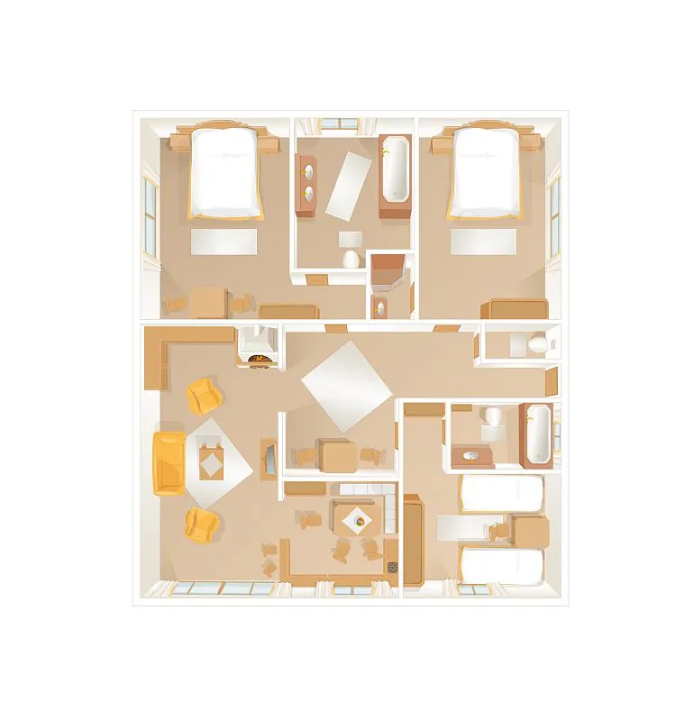 - Two bedrooms with double bed & bathroom, one with a bath and the other with a shower