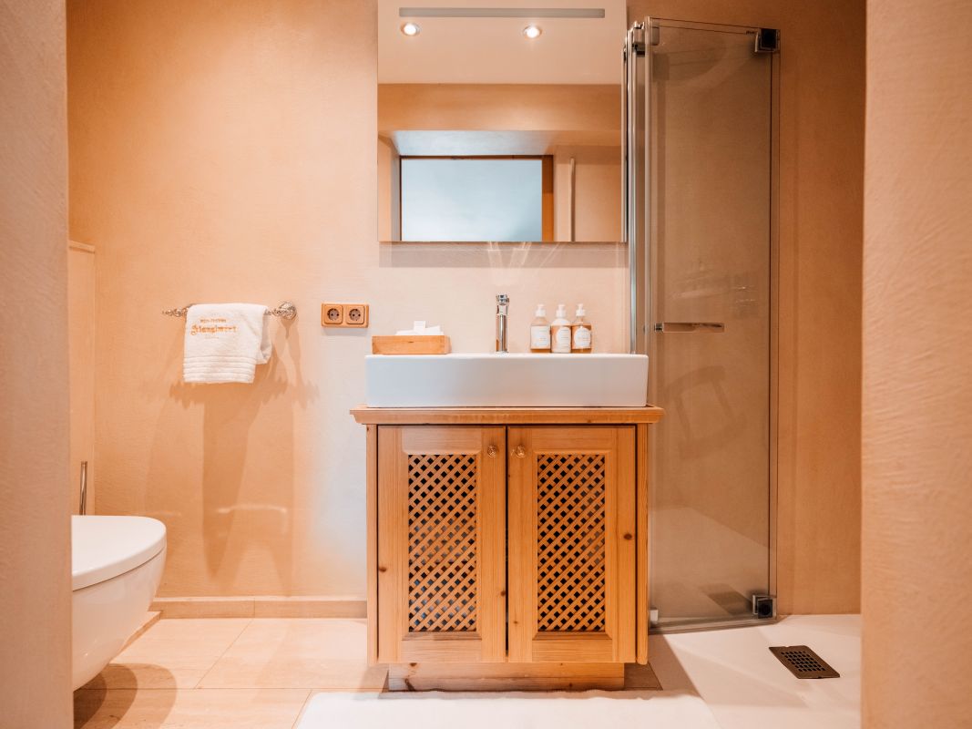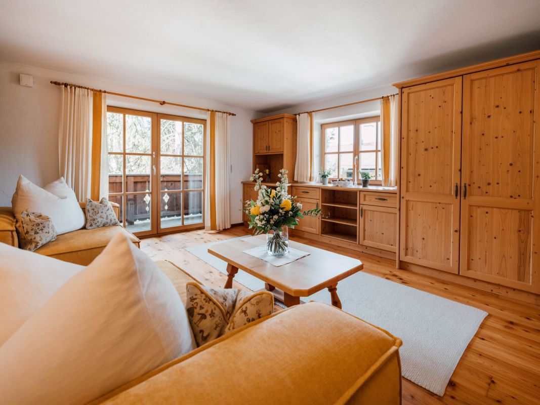The exposed roof truss of this traditional yet ultra-modern top floor apartment with 92 m² of living space radiates a delightful ambience, and catches us off-guard with its coherent contrasts and choice of exquisite materials. At its heart is a spacious and superbly appointed kitchen-cum-living room, the ideal place for social gatherings of family and friends. Another spacious living room, two bright bedrooms and two bathrooms complete the generous space in the Geigerhäusl. Several flatscreen TVs provide the technological luxury, which is the perfect complement to the homely "Alpine lifestyle" furnishings.