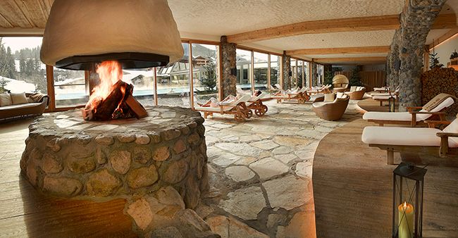 - 2,500 m² wellness world for those aged 15 and over who are looking for total relaxation, with: Europe's largest hotel saltwater pool (210 m2, 36°C), competition-standard swimming pool (25x7 m) with OMEGA time measurement, a large panoramic event sauna with direct access to the lovingly created natural bathing lake (517 m2), Arolla pine eco-sauna, marble steam bath, waterfall grotto, wellness buffet and panoramic relaxation zones, complete with open fireplaces and chill-out islands