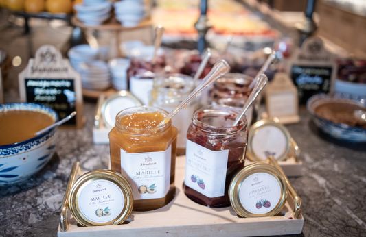 In our charming hotel restaurant, a delicious multi-course menu awaits you (partly theme buffet evenings). The menu price is €70.00 per adult and for children aged 15 and over.