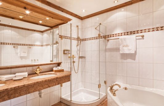 Very spacious living room with tiled stove, seating corner with table and cosy lounge area, 2 or 3 bedrooms each of which has a Swiss stone pine double bed, 2 or 3 bathrooms with double washbasin, 1 with corner bathtub and shower, separate WC, telephone, Wi-Fi, mini-bar, safe, each room has a flatscreen TV, Nespresso machine incl. sustainable capsules, large balcony with view on the ‘Wilder Kaiser’ mountain and to the ‘Kaiserwiese’