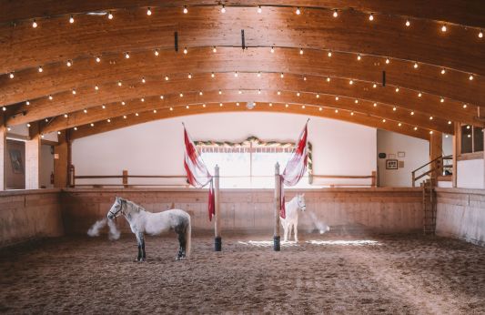 Our noble Lipizzaner stud is Elisabeth Hauser's favourite hobby. The horse-loving youngest daughter of the hotel's owners runs the Lipizzaner stud and riding school at the Stanglwirt with great enthusiasm. She is ably assisted by her trained team under Lisa Frimberger. Enjoy all the fine features and special characteristics of the Austrian horse of royalty in first-class lessons tailored to the needs of rider and horse alike.